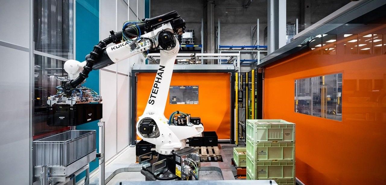 Der Kuka-Roboterarm bearbeitet an einem Arbeitsplatz bis zu 55 Einlagerungen pro Stunde und differenziert dabei vier verschiedene Kleinladungsträgertypen durch präzise 3D-Vision-Erkennung. Automatisch entnommene leere Behälter werden sofort wieder dem System zugeführt. Jeder Schritt wird durch Barcodeleser und Gewichtssensoren lückenlos überwacht. Zur Absicherung der Zugangspunkte kommen INXPECT-Radartechnik, Lichtgitter und Rolltorsteuerung zum Einsatz. Die vollständige SAP EWM-Integration sorgt für transparente Lagerbestandsführung in Echtzeit. Das Modul erhöht die Prozessstabilität und optimiert die Ressourcenauslastung.